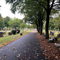We were up and back on the road at 10:00 a.m. headed to Arkansas. We stopped by Maplewood Cemetery in Harrison. My Aunt is buried there and I take an annual Fall trip to see the beautiful maples in full Fall color. As you walk through the cemetery of massive maple trees, there is just a beauty and peace that cannot be explained. The bells from the nearby Catholic Church chime every half hour and ring throughout the cemetery. Today, the leaves were still green even though some leaves have fallen. Note to self: I'll just have to take another trip when the leaves are in full color.