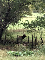 Our next stop was just down the road. Cars were pulled off and lined both sides of the road so we knew the elk were out today. We found a place to pull over and joined the many photographers with our cameras. One big bull was resting under a tree while another bull and his herd were out in a pasture. We took, one, two or maybe fifty pictures and headed on our way.